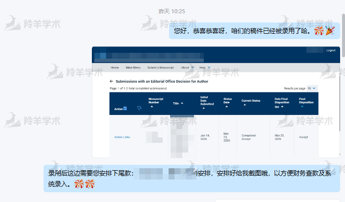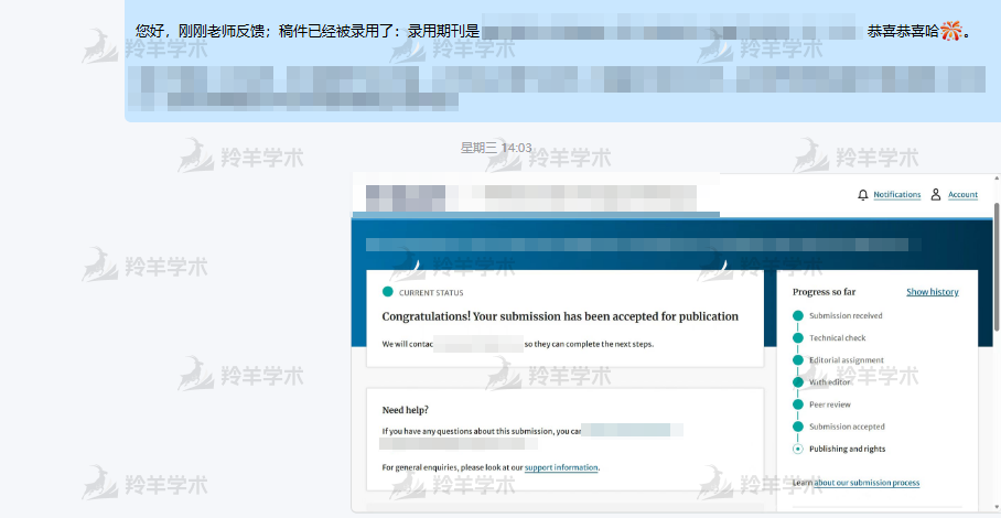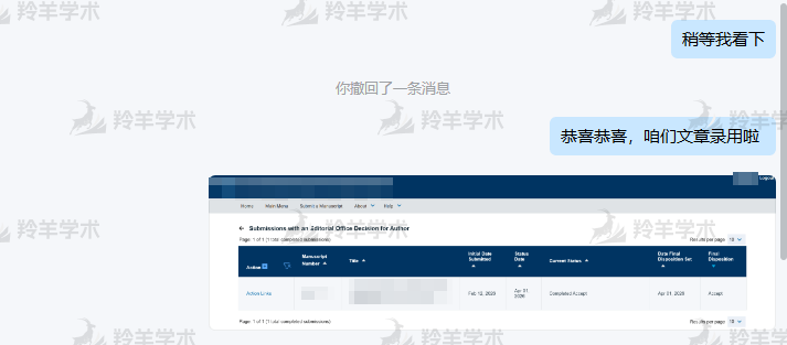 合作之前还有点担心,毕竟网上机构鱼龙混杂,怕踩坑,接触后发现真的很靠谱!投稿后及时帮我跟进度,反馈消息也很及时。