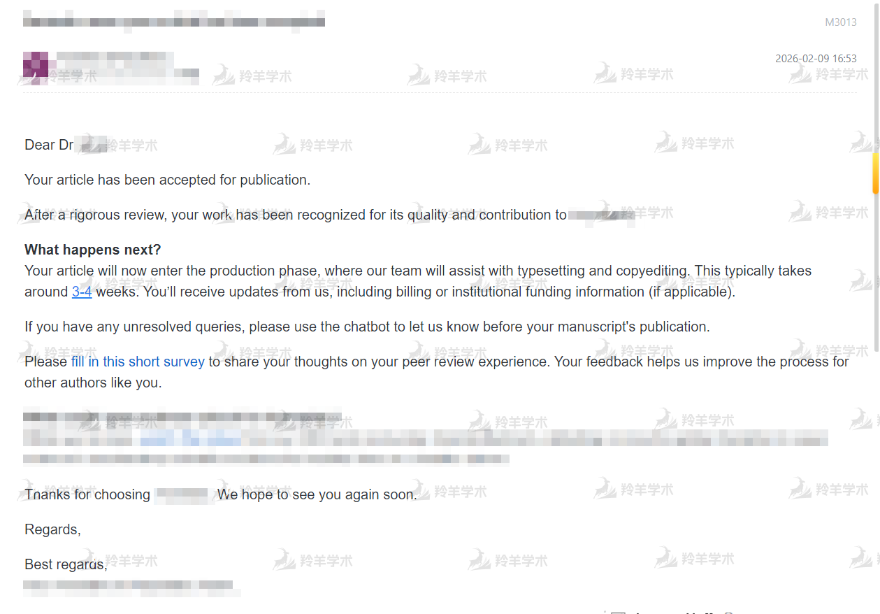 此前被拒了3次,经朋友介绍到佩普这边提交文章预审,通过后不到3个月就收到录用函了,太棒了!!!